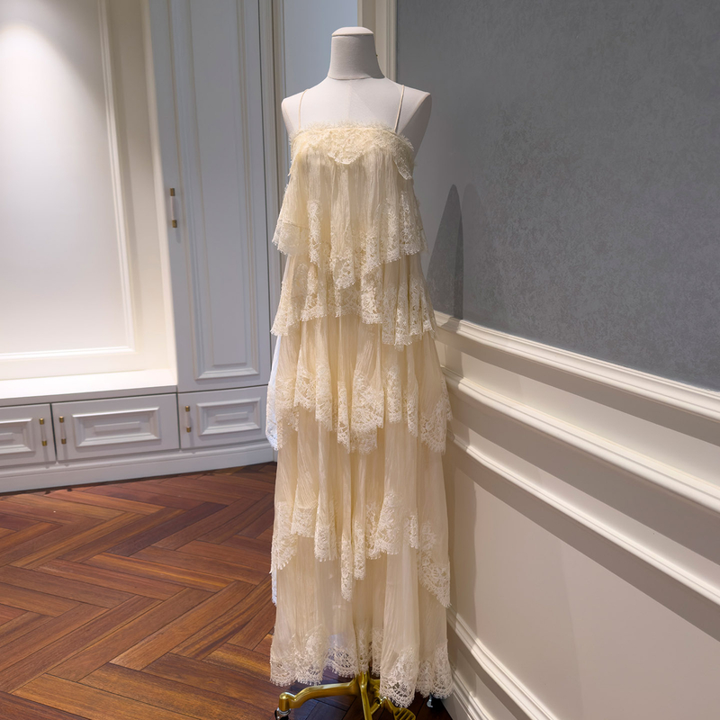 Vintage Lace Ruffle Tiered Maxi Dress69104
