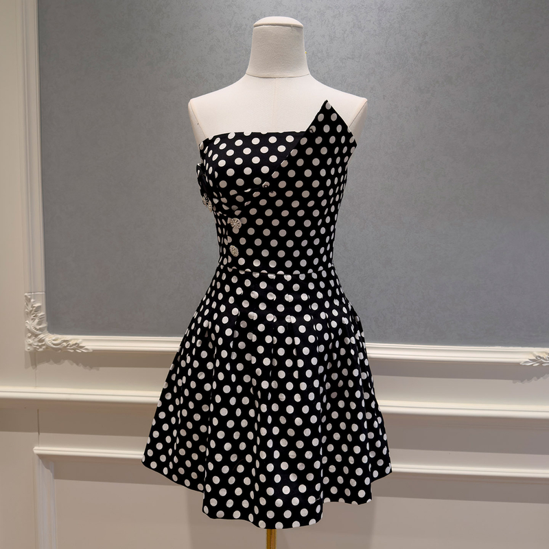Elegant Polka Dot Strapless High-Waist Mini Dress69693