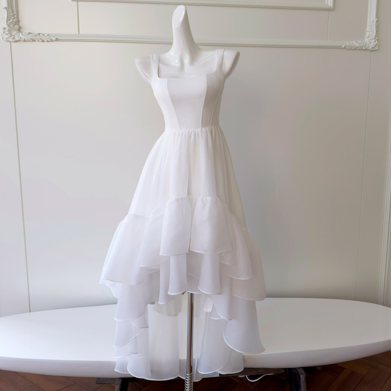 White Tulle Pearl Strap Tiered Cake Maxi Dress69588