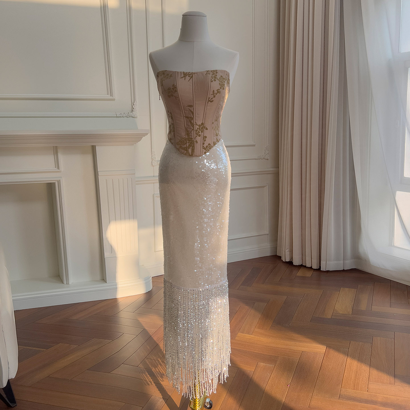 Floral Corset Sequin Fringe Skirt Two-Piece 71501+51423