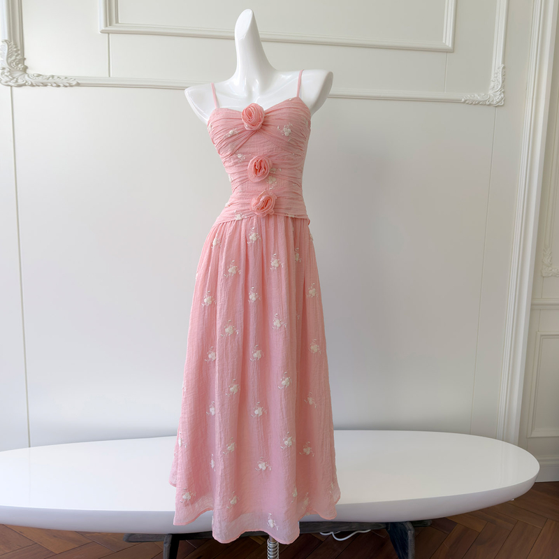 Dusty Pink Spaghetti-Strap Ruffle Tiered Dress69082