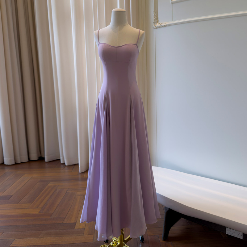 French Elegant Spaghetti Strap Evening Dress, Minimalist Waist-Fitted Slim Fit A-Line Long Vacation Dress69596