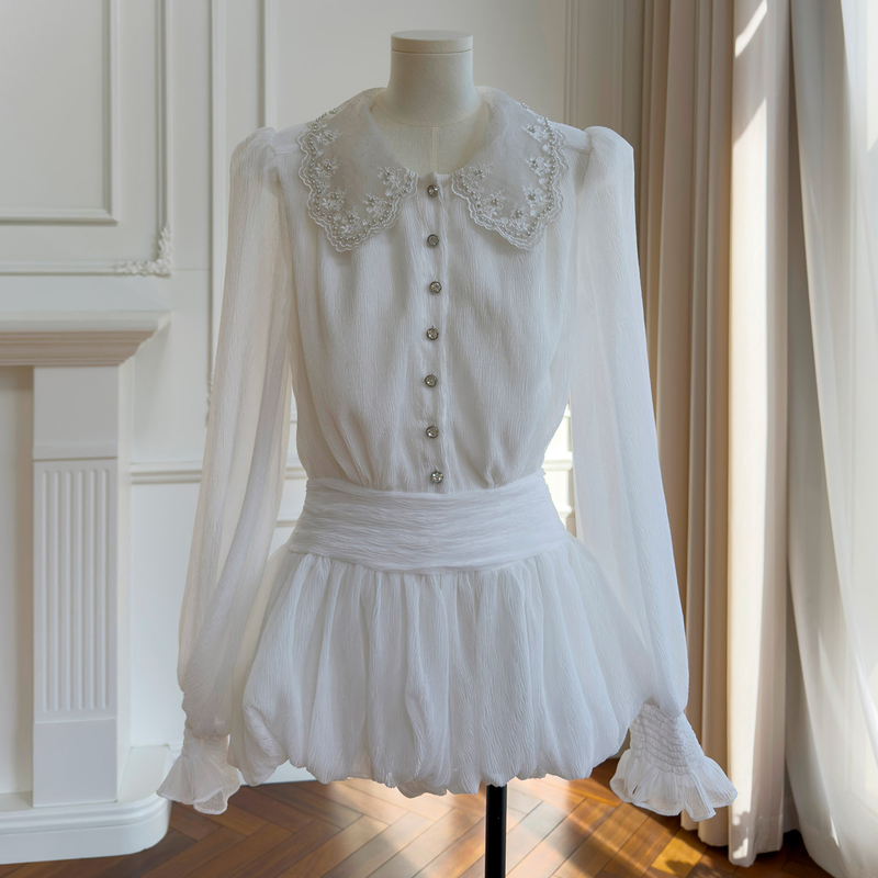 French Luxury Style White Long-Sleeve Romper Dress69628